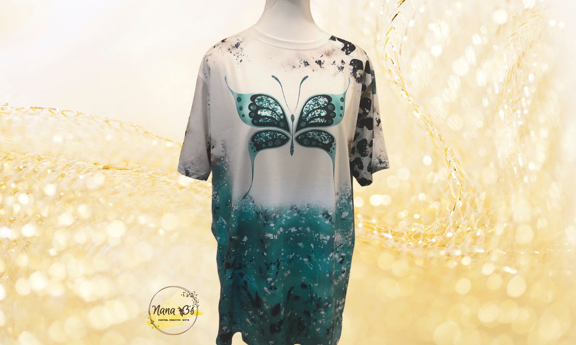 The sublimated 100% polyester teal Butterfly Glitter and Foil Tee Shirt is a stunning and unique piece of apparel that features a beautiful butterfly design with a touch of glitter and foil accents. The sublimation printing process ensures that the design is infused into the fabric, resulting in a durable and long-lasting finish. Made from high-quality polyester, this tee shirt is comfortable, lightweight, and easy to care for. Whether you're looking to make a statement at a special event or add some sparkle to your everyday wardrobe, the Butterfly Glitter and Foil Tee Shirt is the perfect choice.
