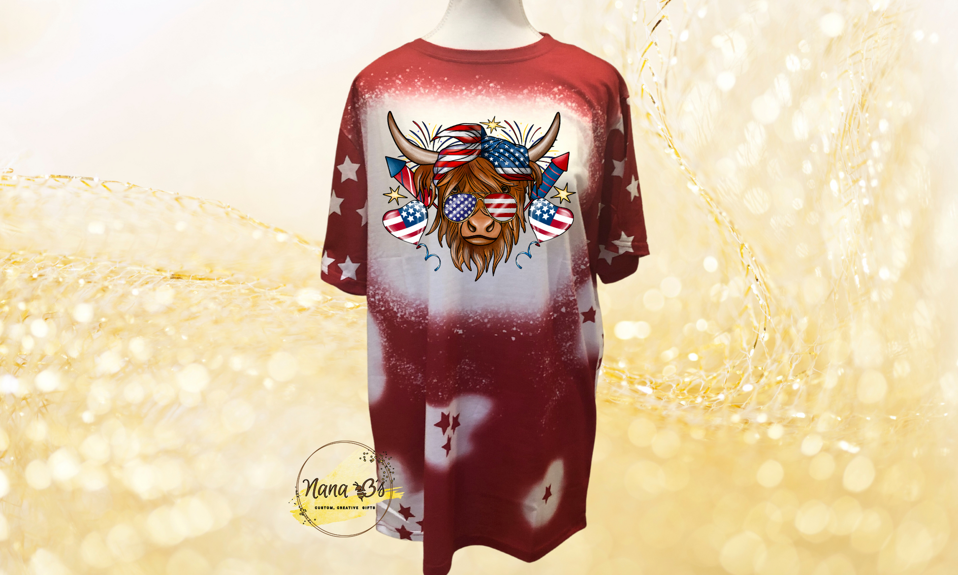 Celebrate the spirit of independence with our sublimation 100% polyester July 4th Highland Cow design! This vibrant and patriotic design is specifically crafted to commemorate the Fourth of July, making it perfect for showing off your national pride. Using the sublimation printing technique, the colors are deeply infused into the fabric, ensuring a long-lasting and fade-resistant finish. Our 100% polyester material offers a comfortable fit and easy care, making it ideal for all-day festivities. Whether you're attending a barbecue, watching fireworks, or participating in a parade, our July 4th sublimation designs will make a bold and stylish statement. Embrace the red, white, and blue in the most vibrant way possible this Independence Day!