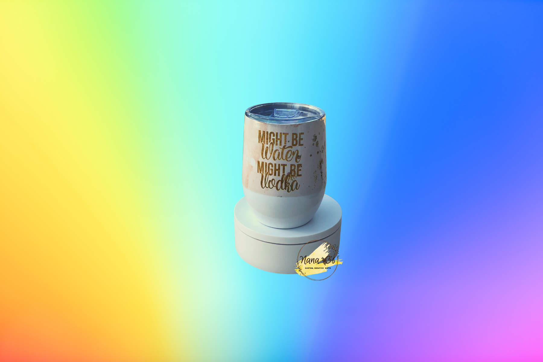 A Wine tumbler with a quote that is applicable to everyone: “Might Be Water or Might be Vodka” Wine Tumbler is a perfect way to carry your wine without any spillage. Made from a high-quality stainless-steel material with an insulated double-walled vacuum keeps your drinks at the perfect temperature.