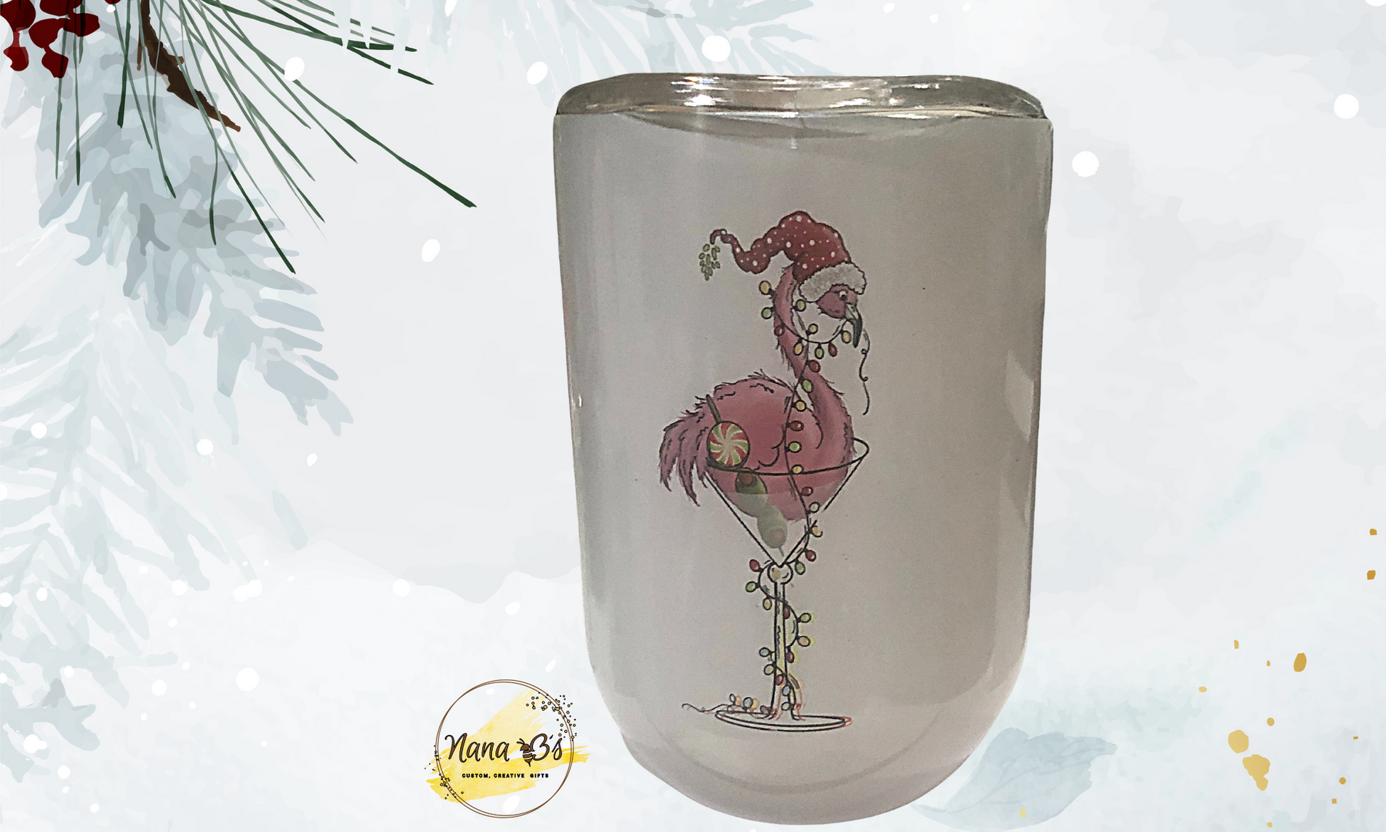 A Wine tumbler with a quote that is applicable to everyone: “Flamingo Christmas Lights” Wine Tumbler is a perfect way to carry your wine without any spillage. Made from a high-quality stainless-steel material with an insulated double-walled vacuum keeps your drinks at the perfect temperature.