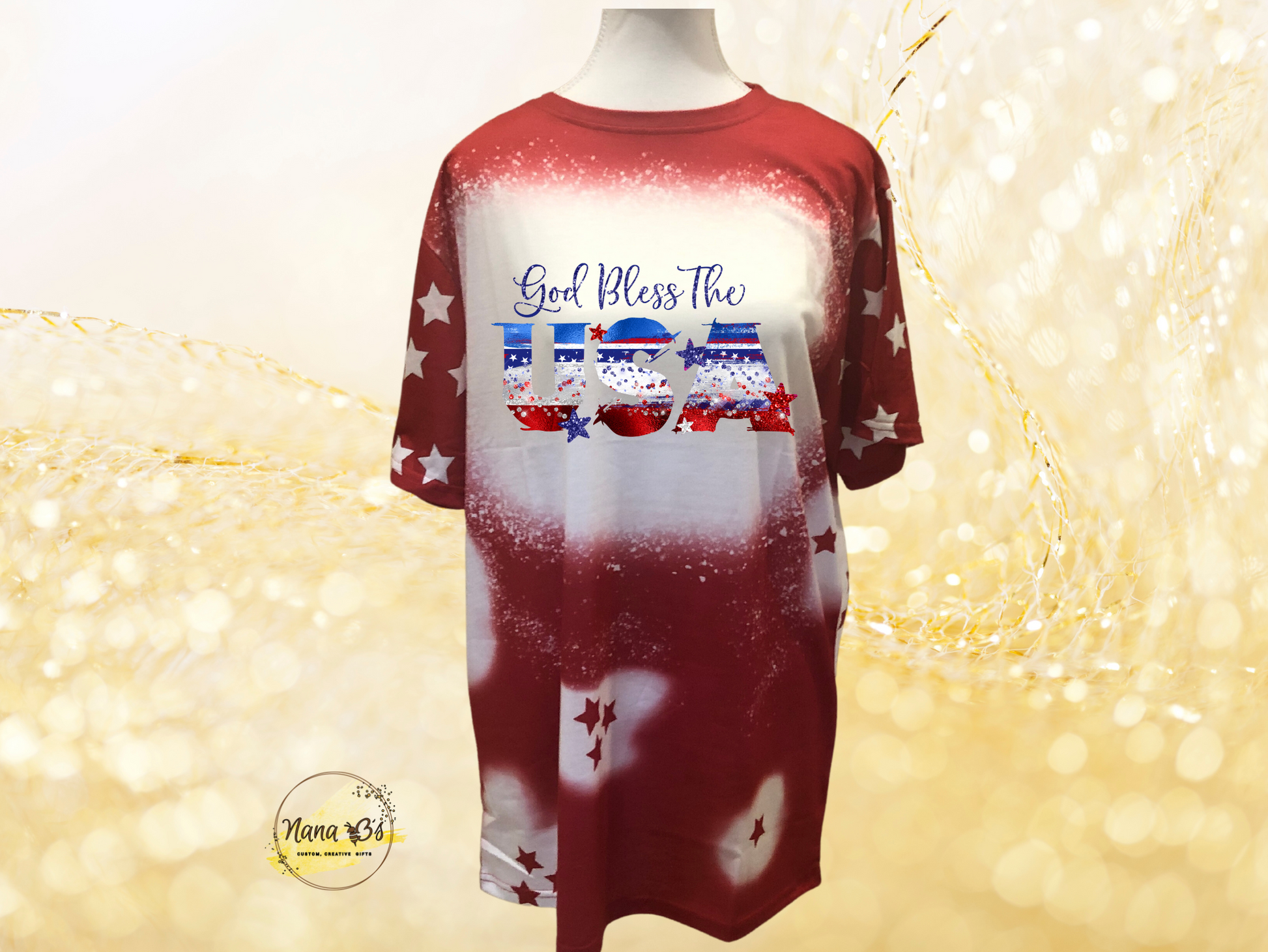 FOURTH OF JULY TEES God Bless the USA Red w stars